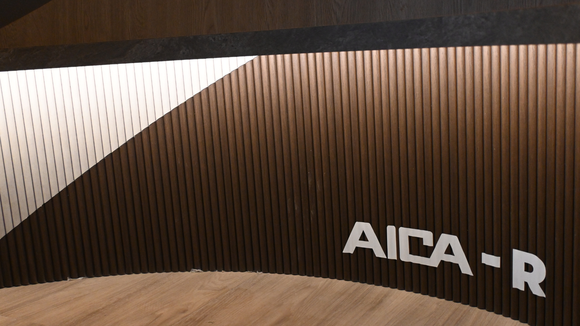Newcomer AICA-R also generated buzz. Made from high-quality ABS material and backed with flexible paper, this WPC-like decorative panel is both durable and malleable, perfect for curved or irregular surfaces. The booth floor itself featured AICA-SPC flooring, crafted from a blend of stone powder and PVC resin. This material outperforms traditional vinyl in both strength and longevity, while delivering a soft, pleasant feel underfoot. AICA chose a warm, light brown finish for a harmonious and inviting atmosphere.