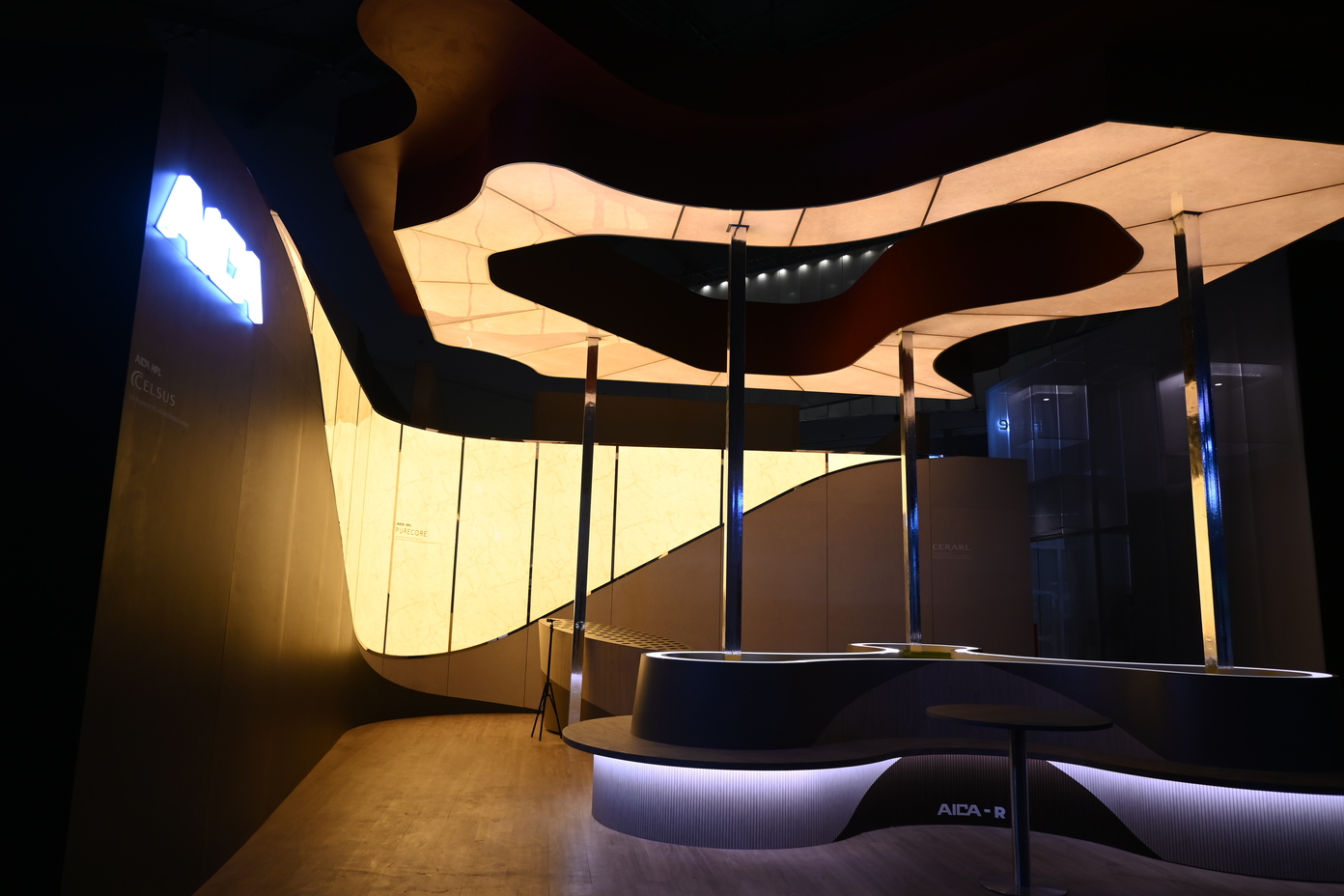 Newcomer AICA-R also generated buzz. Made from high-quality ABS material and backed with flexible paper, this WPC-like decorative panel is both durable and malleable, perfect for curved or irregular surfaces. The booth floor itself featured AICA-SPC flooring, crafted from a blend of stone powder and PVC resin. This material outperforms traditional vinyl in both strength and longevity, while delivering a soft, pleasant feel underfoot. AICA chose a warm, light brown finish for a harmonious and inviting atmosphere.