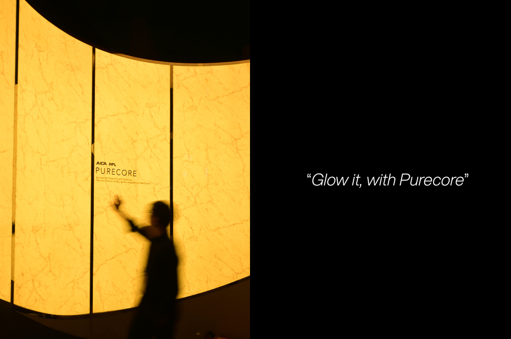 เพื่อนำแนวคิดเชิงพื้นที่อันชวนดื่มด่ำนี้มาสู่ความเป็นจริง บูธจัดแสดงได้นำวัสดุตกแต่งพื้นผิวจาก Aica หลากหลายประเภทมาใช้ ไม่ว่าจะเป็น Aica HPL, Aica HPL Purecore, CERARL, ToughTop, Aica R และ Aica SPC เพื่อมอบประสบการณ์ทางประสาทสัมผัสทั้งทางสายตาและการสัมผัสอย่างเต็มอิ่มให้แก่ผู้เข้าชม โดยคุณCahyo ได้กล่าวสรุปไว้ดังนี้