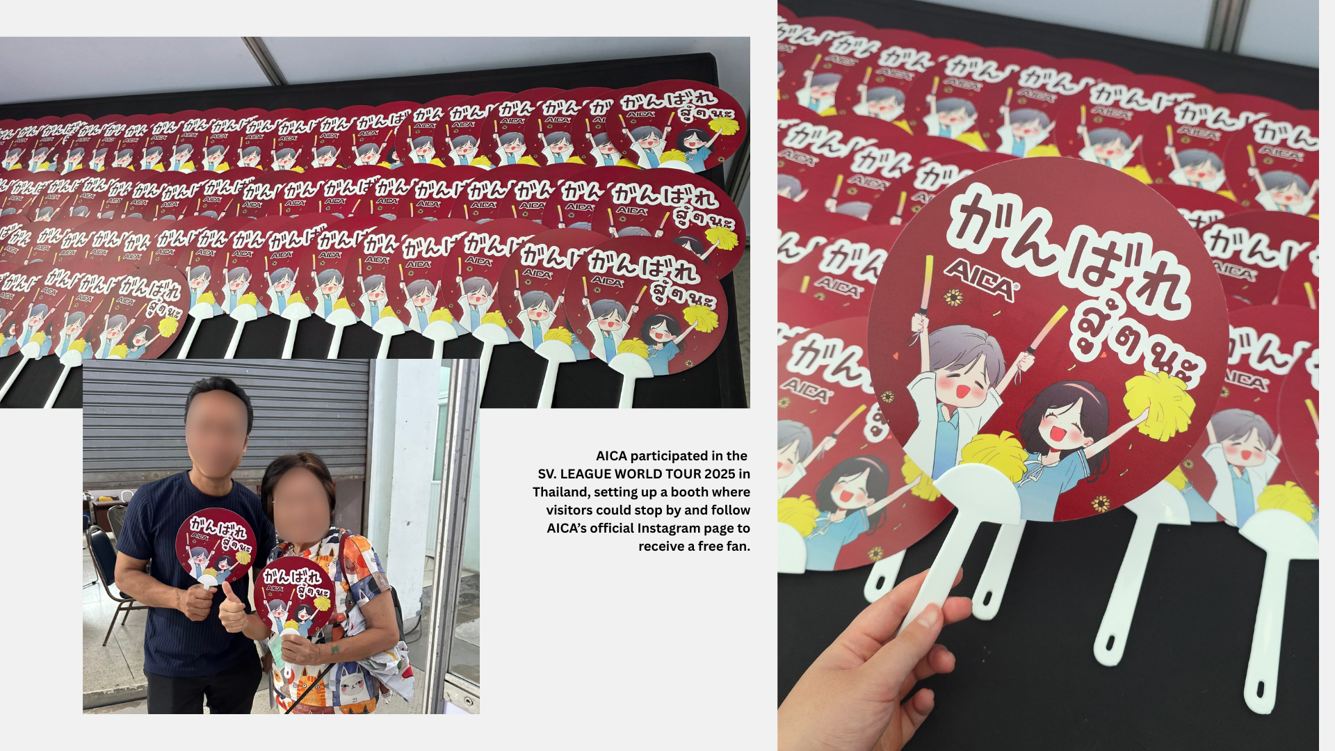 We also set up a booth to give away AICA fans to all attendees, helping them stay cool while cheering on the teams with even more enthusiasm. The event buzzed with energy, as the audience cheered passionately and showed incredible support throughout the matches.