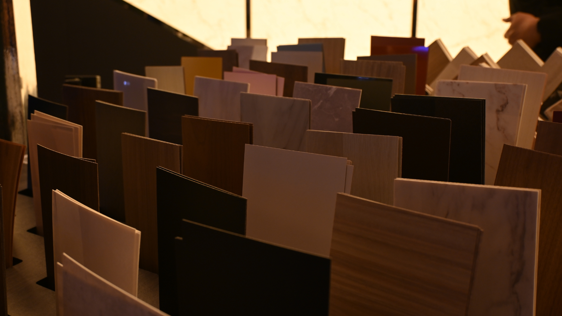 The material also featured on the booth’s ceiling in a striking design inspired by the Indonesian flag, using red solid-color HPL alongside the glowing onyx pattern. Its easy installation and visual impact captured the admiration of architects and designers, sparking questions and inspiration.